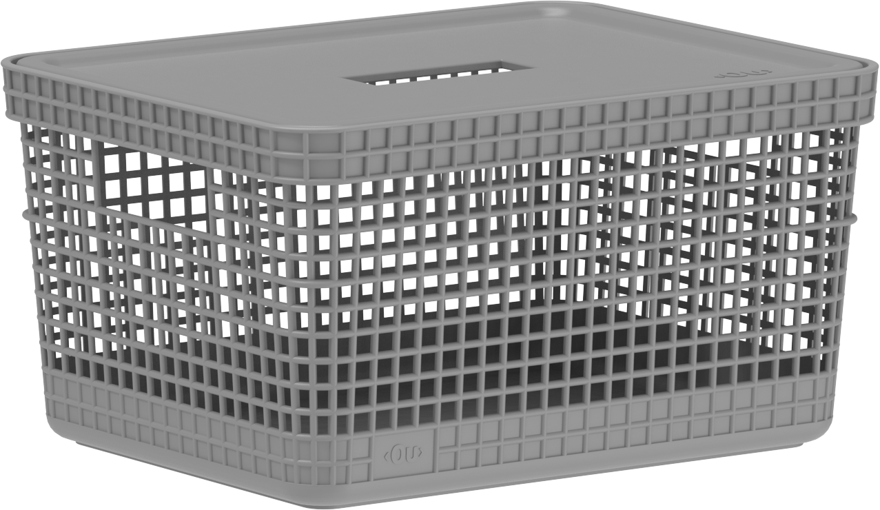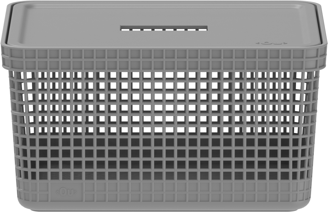 CESTO ORGANIZADOR PLASTICO GRID C/TAMPA 8L CHUMBO