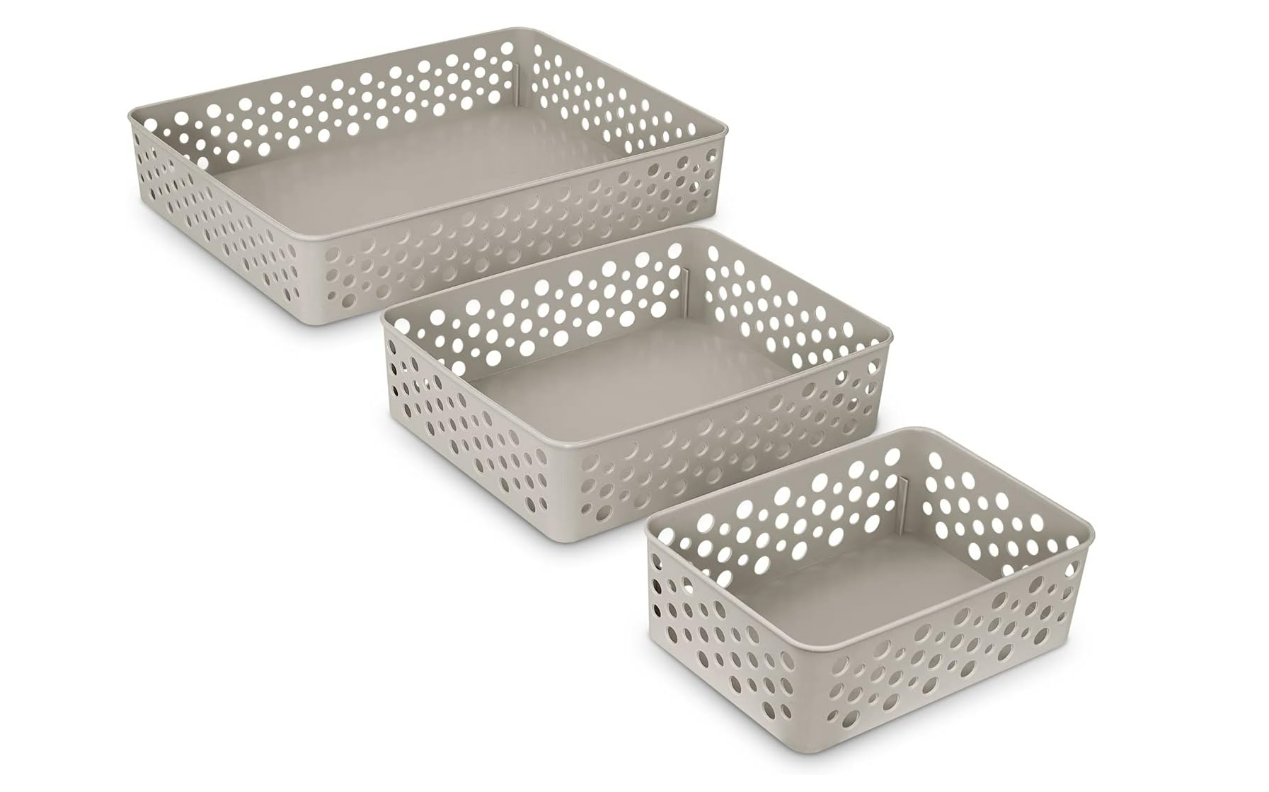 KIT CESTO ORGANIZADOR PLASTICO RETANGULAR 3PCS CINZA