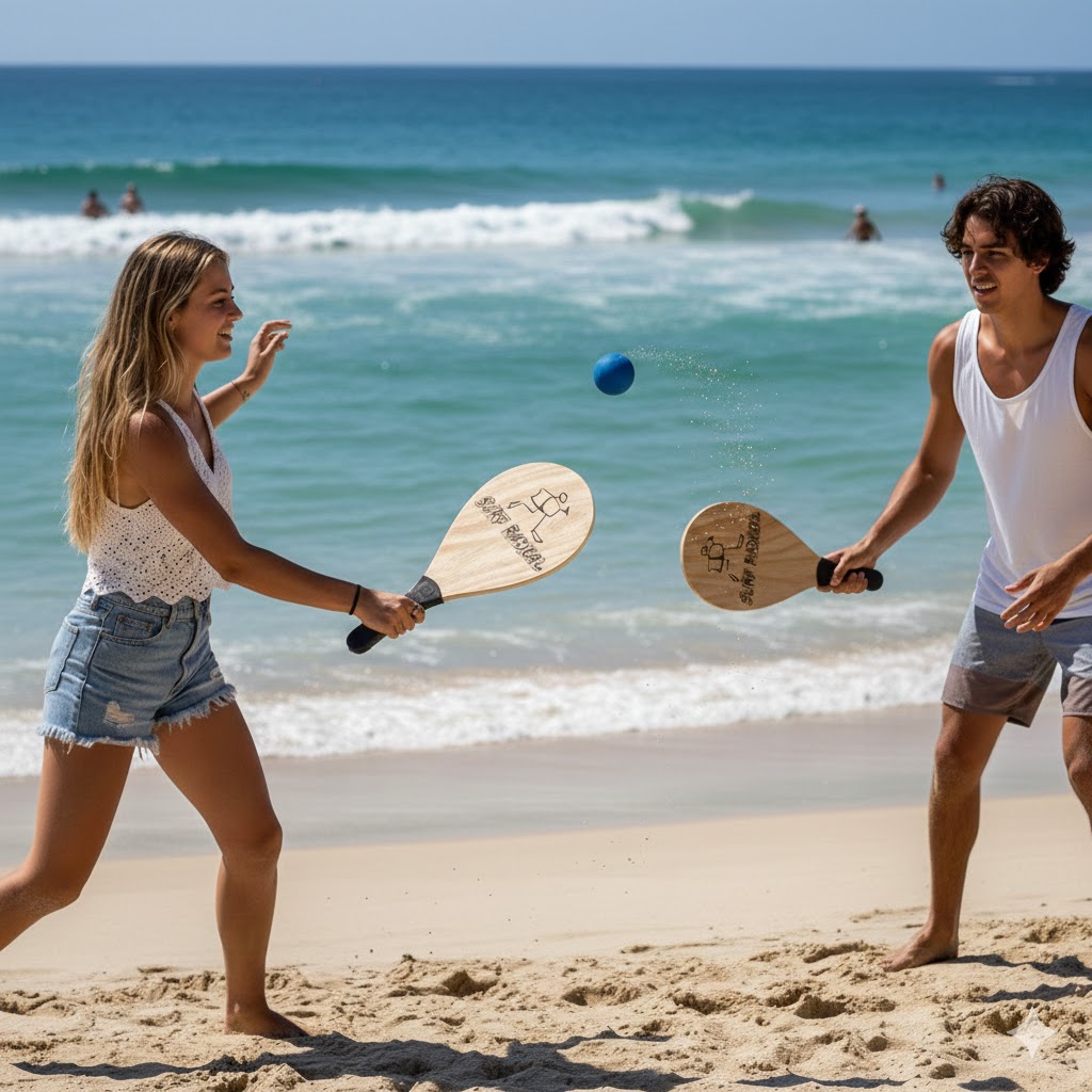 RAQUETE FRESCOBOL MADEIRA C/ BOLINHA SURF RADICAL