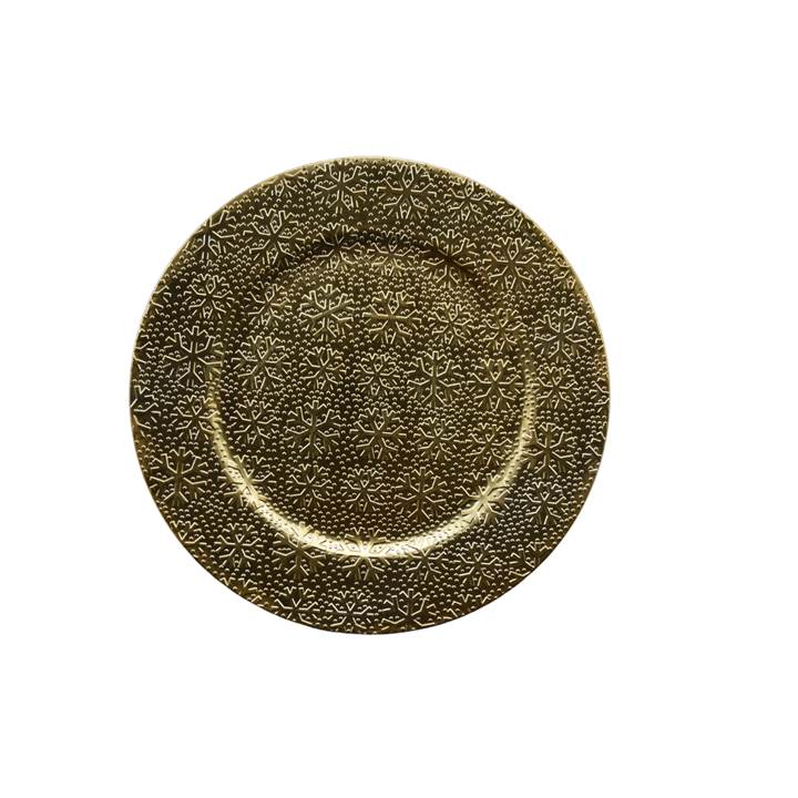 SOUSPLAT PLASTICO REDONDO FLOCOS NEVE 33CM DOURADO ED504518